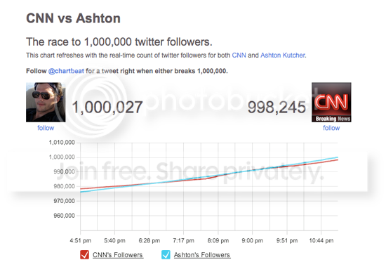 This is what started as a rather innocuous challenge over the number of users following the Twitter updates. An account that had been created to track CNN's Breaking news, @cnnbrk was the account with the most followers, but Ashton Kutcher (@aplusk) challenged CNN to a Twitter battle, declaring that he could get one million followers before CNN did.