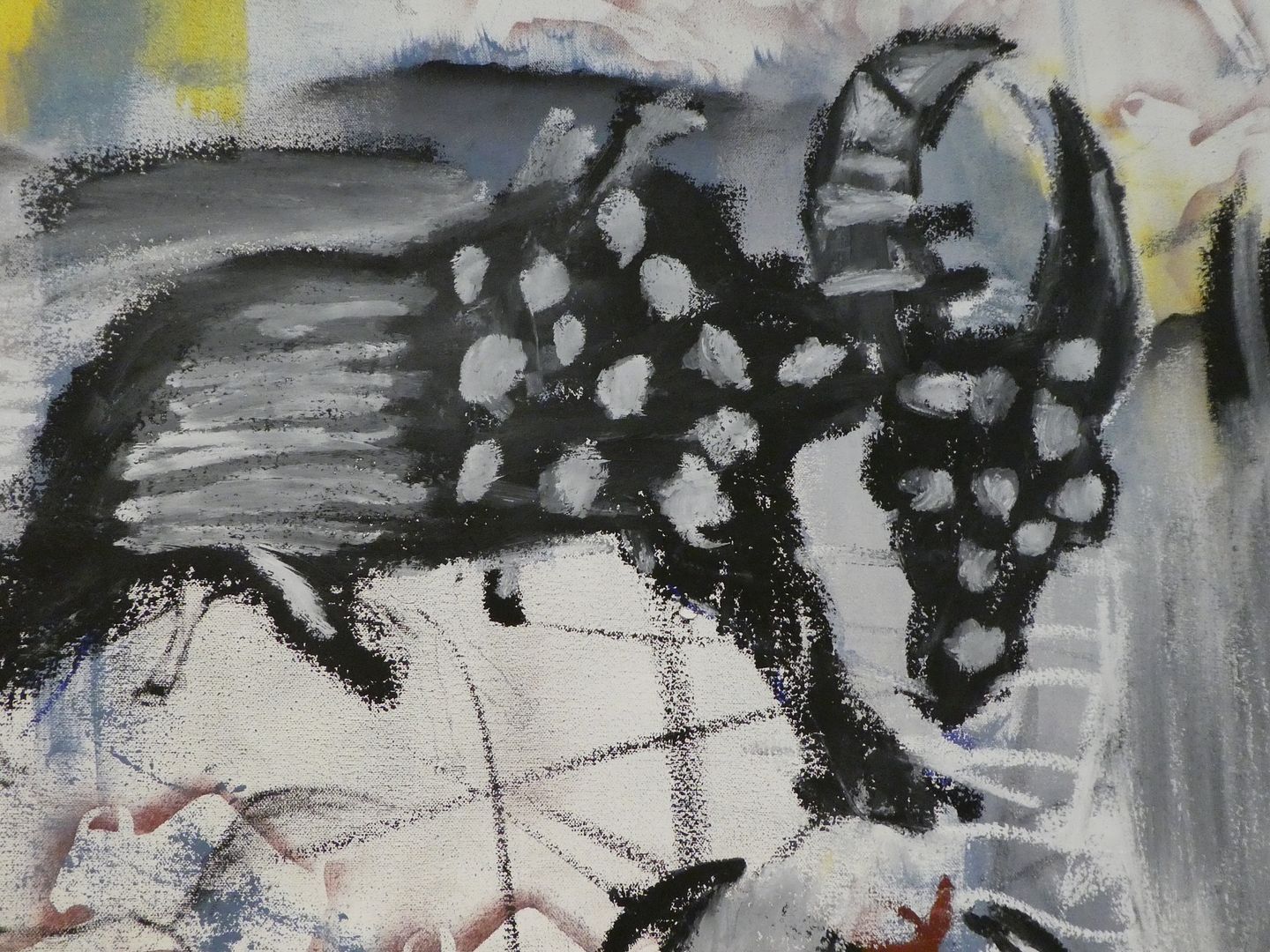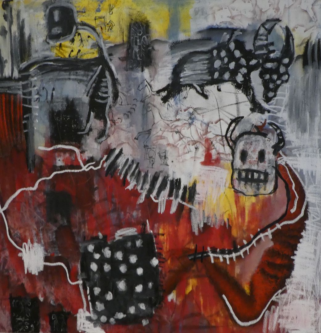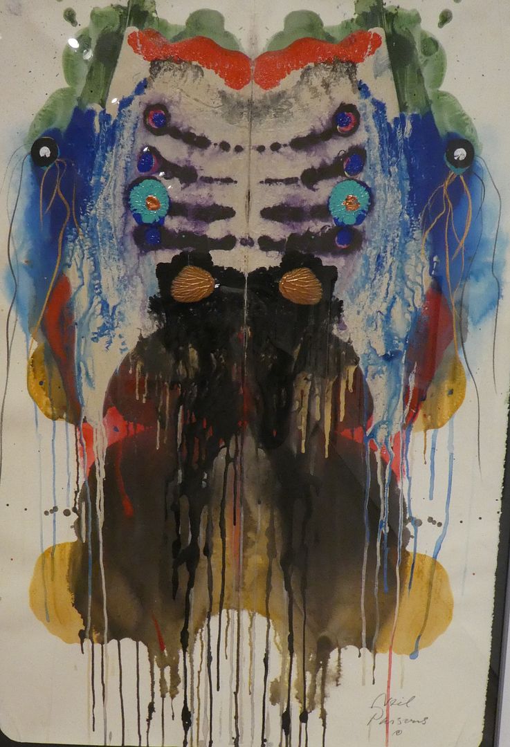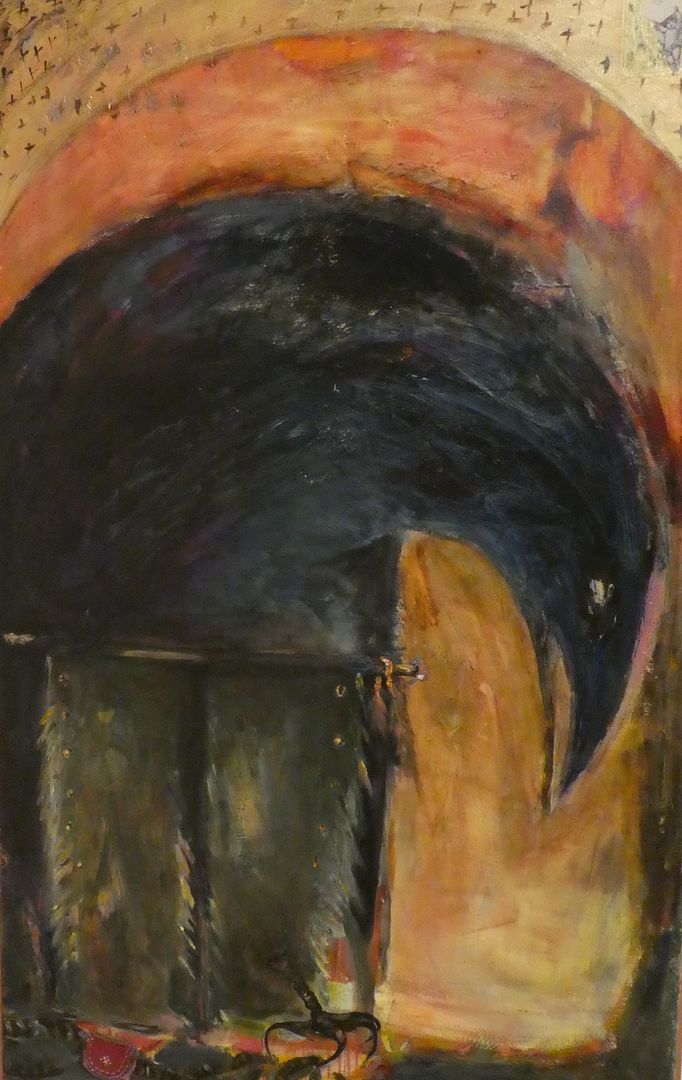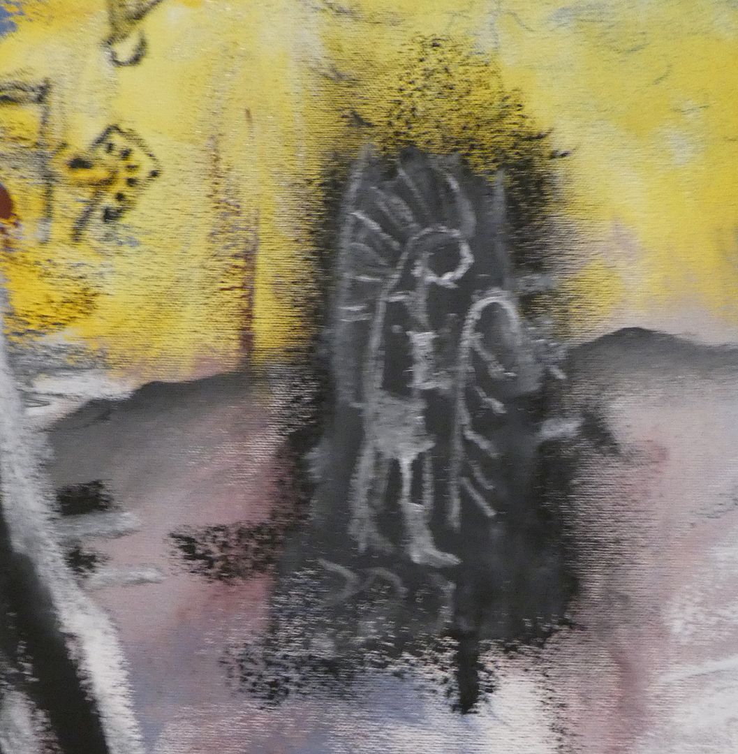 Raven and Competition, 1994; acrylic, paper, leather, beads on canvas