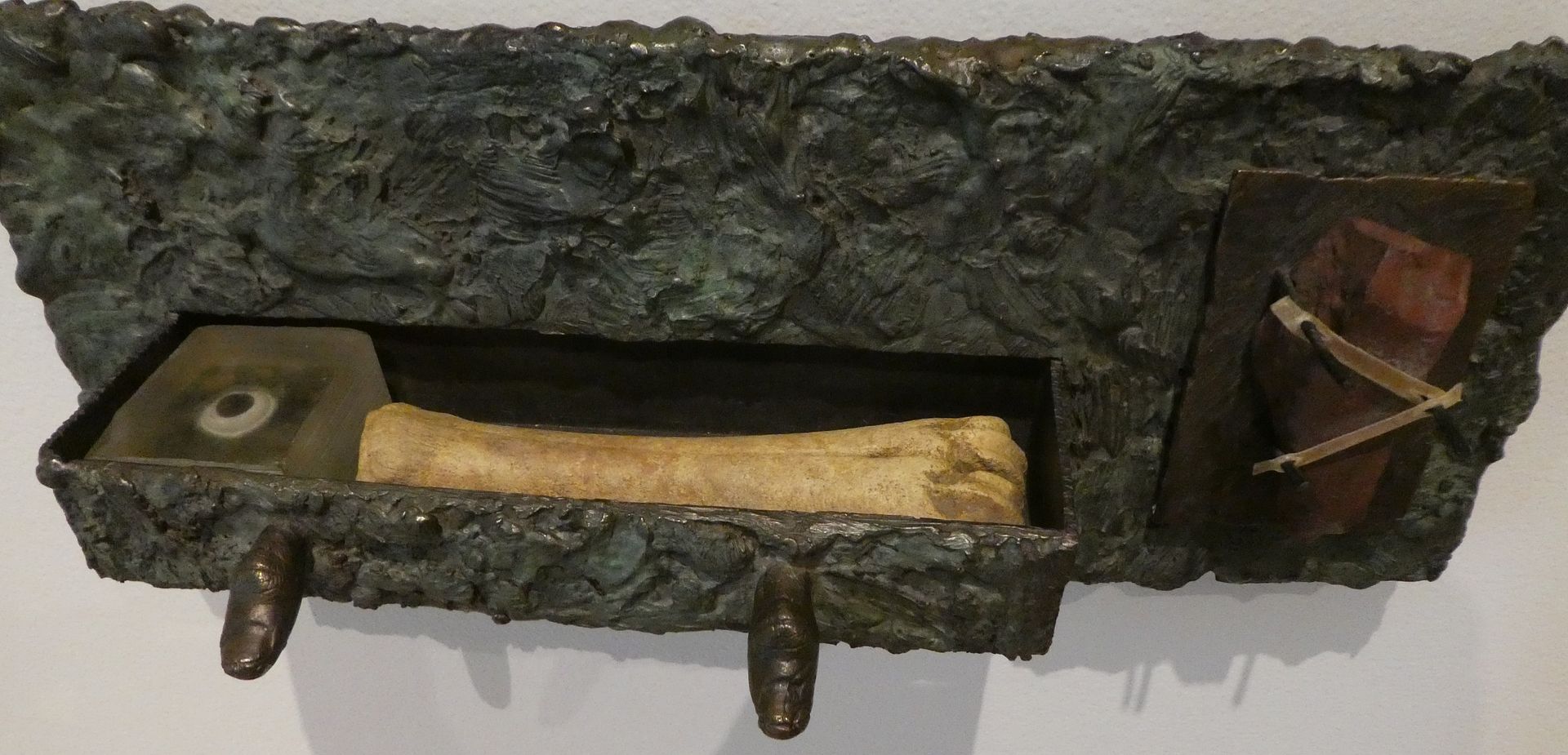 Culture Cache Series #2, 1993; bronze, bone, stone, resin and rawhide